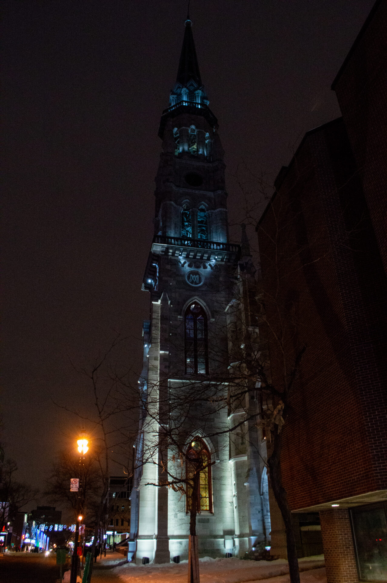 Mardi soir avait lieu le dévoilement du clocher de l’Église Saint-Jacques nouvellement restauré. Situé en plein cœur du Quartier Latin, le clocher a été intégré à l’UQAM lors de sa construction au début des années 1970. Il était en rénovation depuis 2017 et faisait partie d’un des projets pour le 50e anniversaire de l’UQAM, célébré en 2019. Le clocher fait aussi partie du Répertoire du patrimoine culturel du Québec.