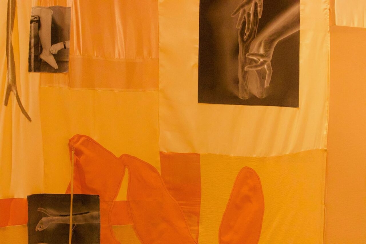 L’installation À la croisée du soin et du désir, qui accueille les visiteurs et visiteuses de la galerie, s’inspire du vécu de Caroline Mauxion, artiste émergente et doctorante en études et pratiques des arts de l’UQAM.