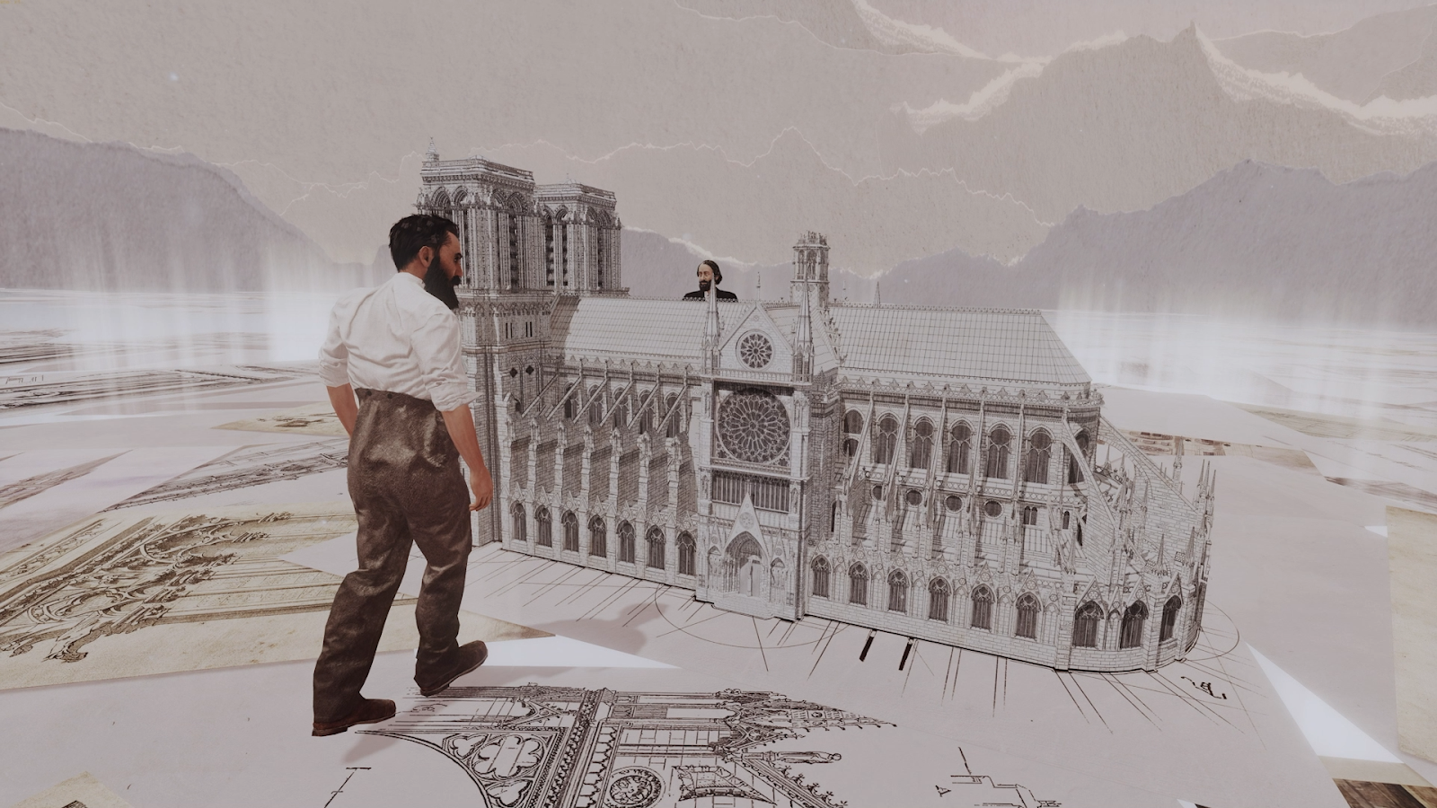 Des personnages d’époque déambulent dans la cathédrale, ce qui ajoute du réalisme à l’expérience.
